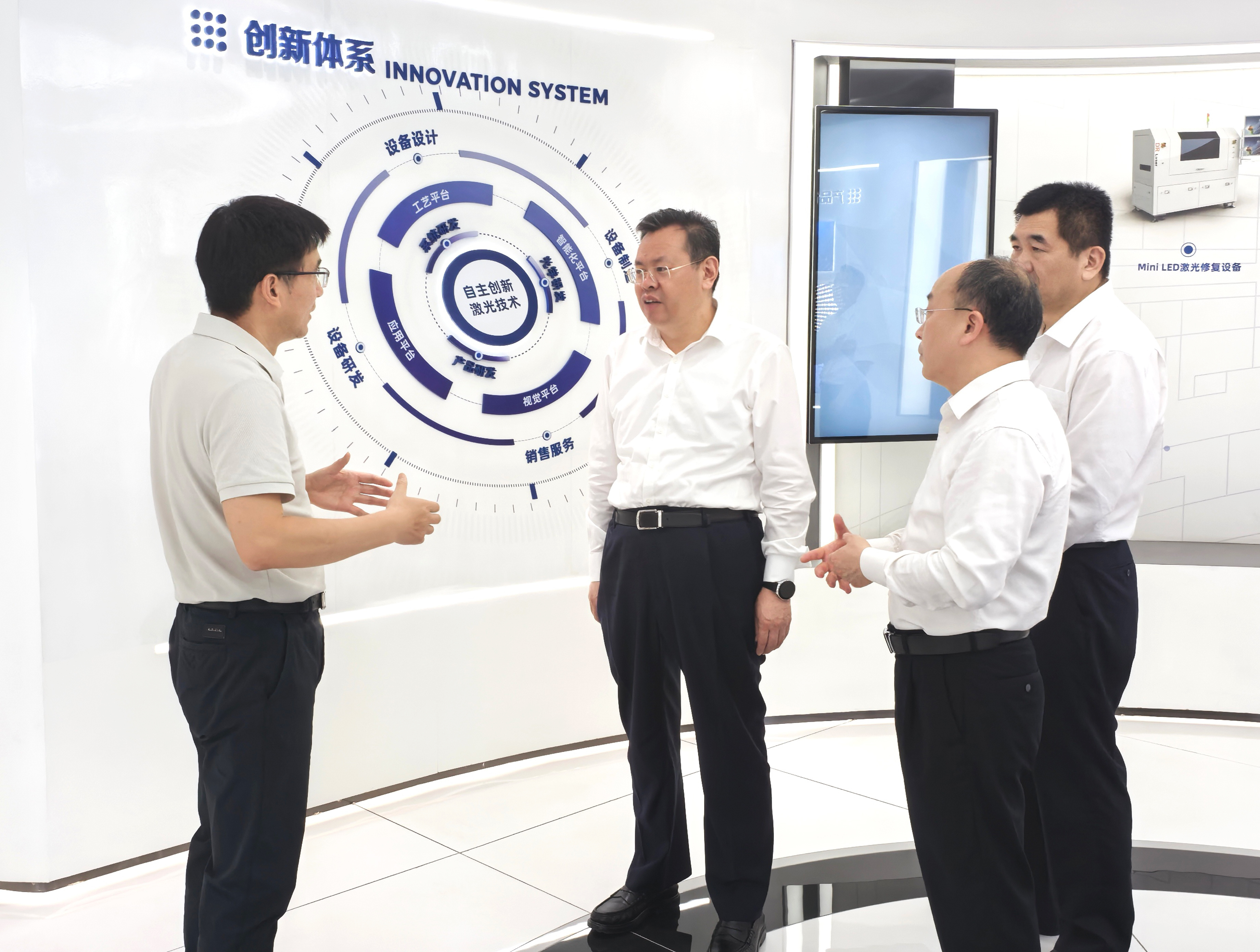 在帝爾激光,程用文詳細了解企業(yè)生產經營、研發(fā)創(chuàng)新、場景應用等情況,并座談聽取有關情況匯報。他指出,省政府出臺推動激光產業(yè)高質量發(fā)展的實施意見以來,省市各有關方面主動靠前服務,在項目建設、創(chuàng)新攻關、產業(yè)培育等方面取得新成效,要堅定信心、明確任務、協(xié)同推進,打造全球領先的激光產業(yè)高地和技術創(chuàng)新策源地,鞏固提升我省光電子信息產業(yè)獨樹一幟的地位。